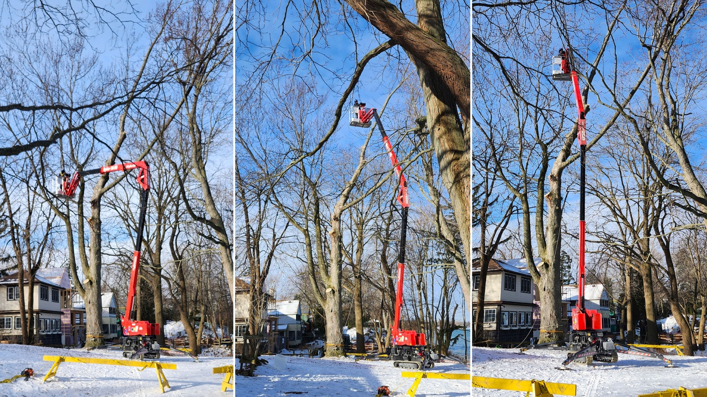 Avec l'industrie de l'arboriculture en plein essor au Canada, la demande pour des services d'entretien des arbres est élevée. Notre équipement est hautement flexible, permettant aux arboriculteurs de se positionner précisément là où ils en ont besoin et de réaliser des coupes et des tailles plus précises. Grâce à la capacité d'atteindre des hauteurs très élevées, les arboriculteurs peuvent accéder à la canopée supérieure des arbres, ce qui serait difficile et dangereux à atteindre par l'escalade seule.